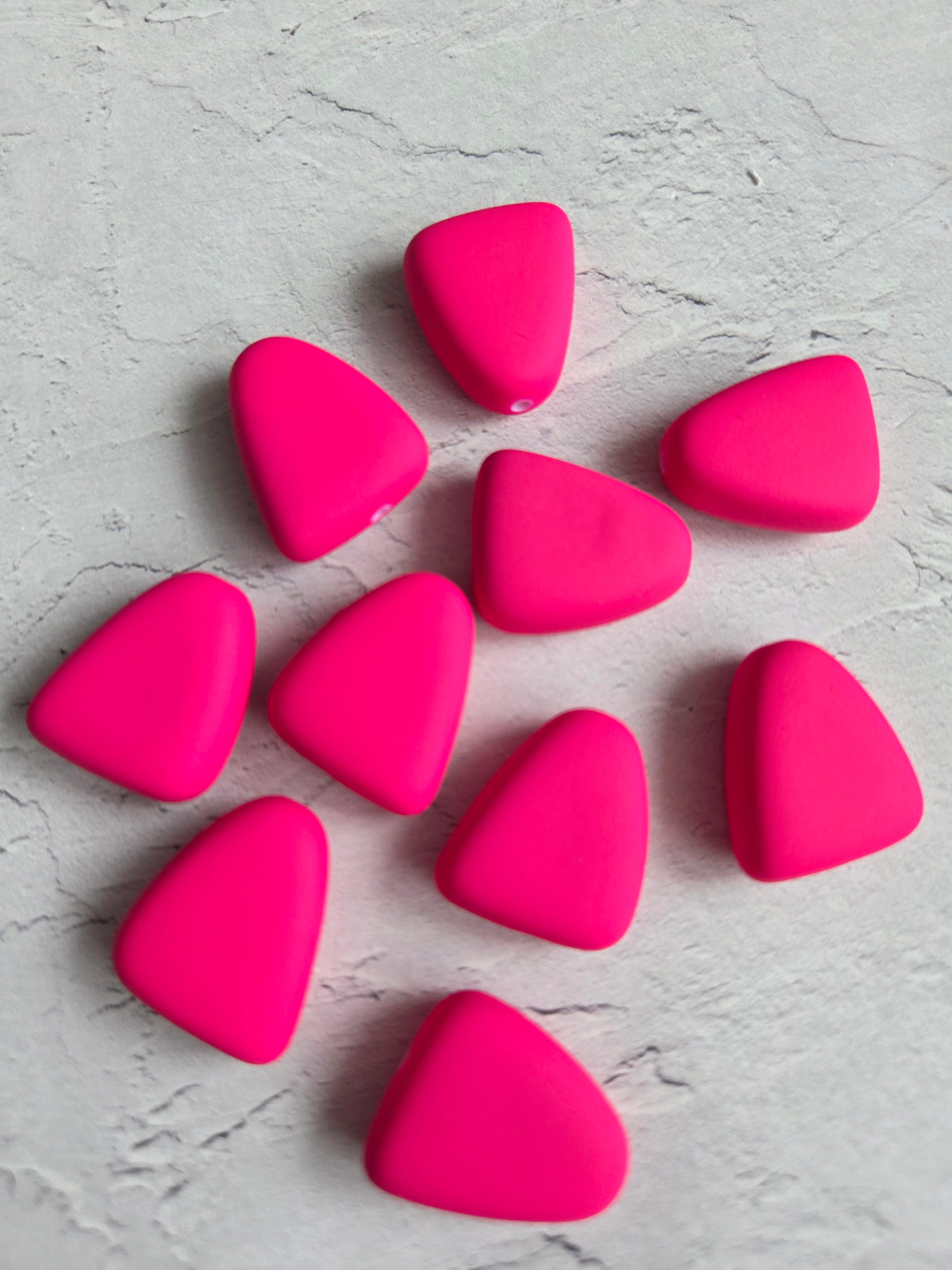 ラバー加工ネオンピンク三角ビーズ 6個 No.BE305