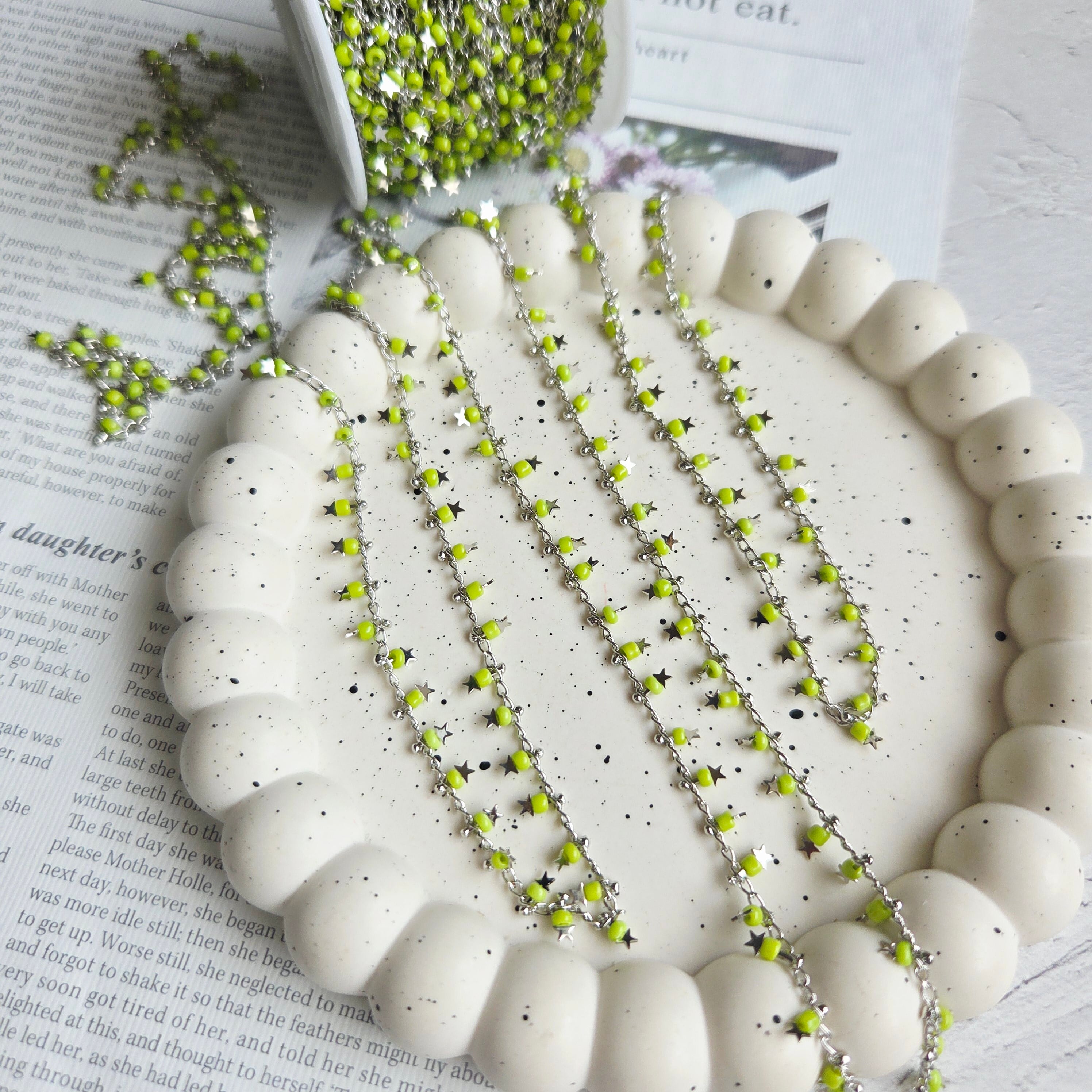 スター付きチェーン(イエローグリーン) 50cm No.CHA89