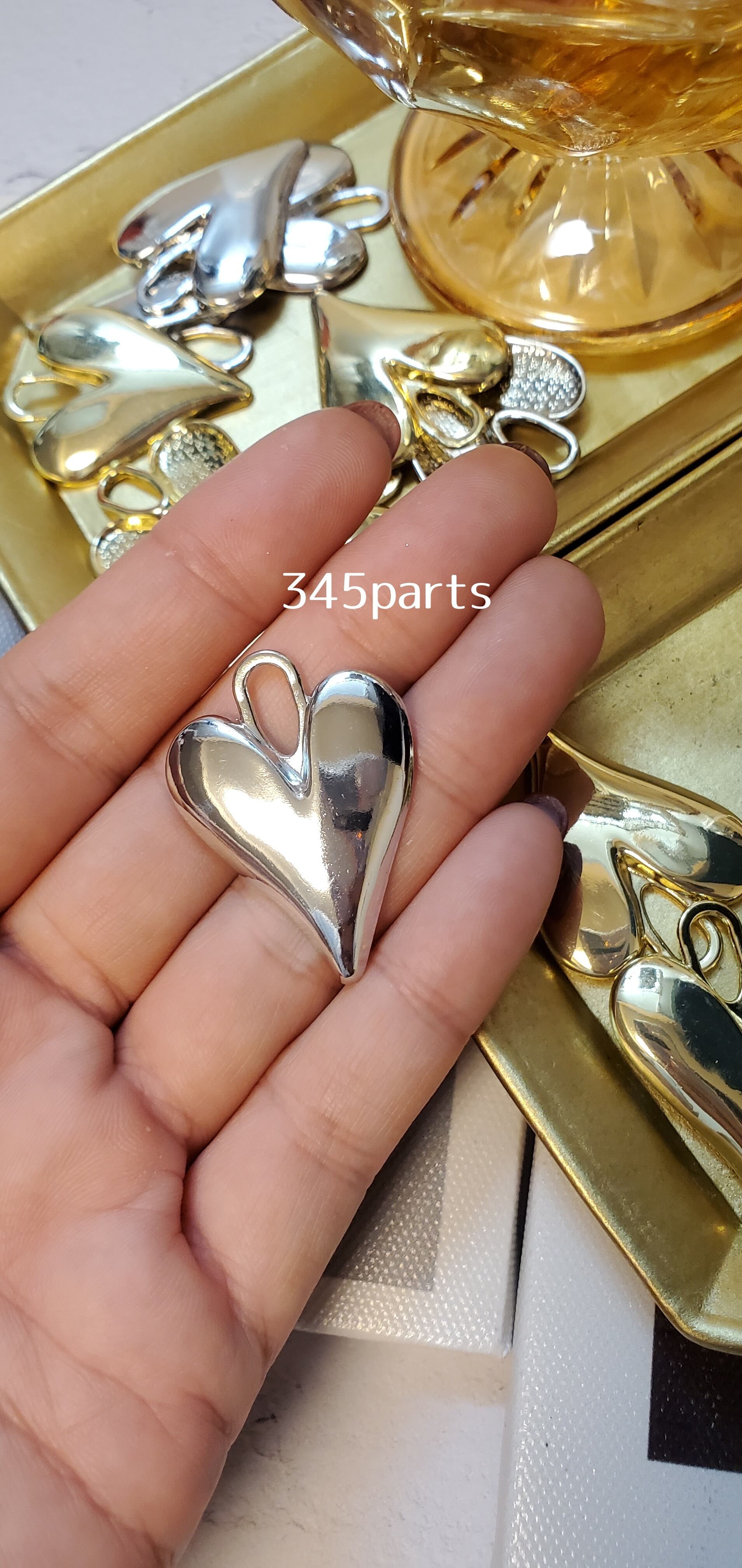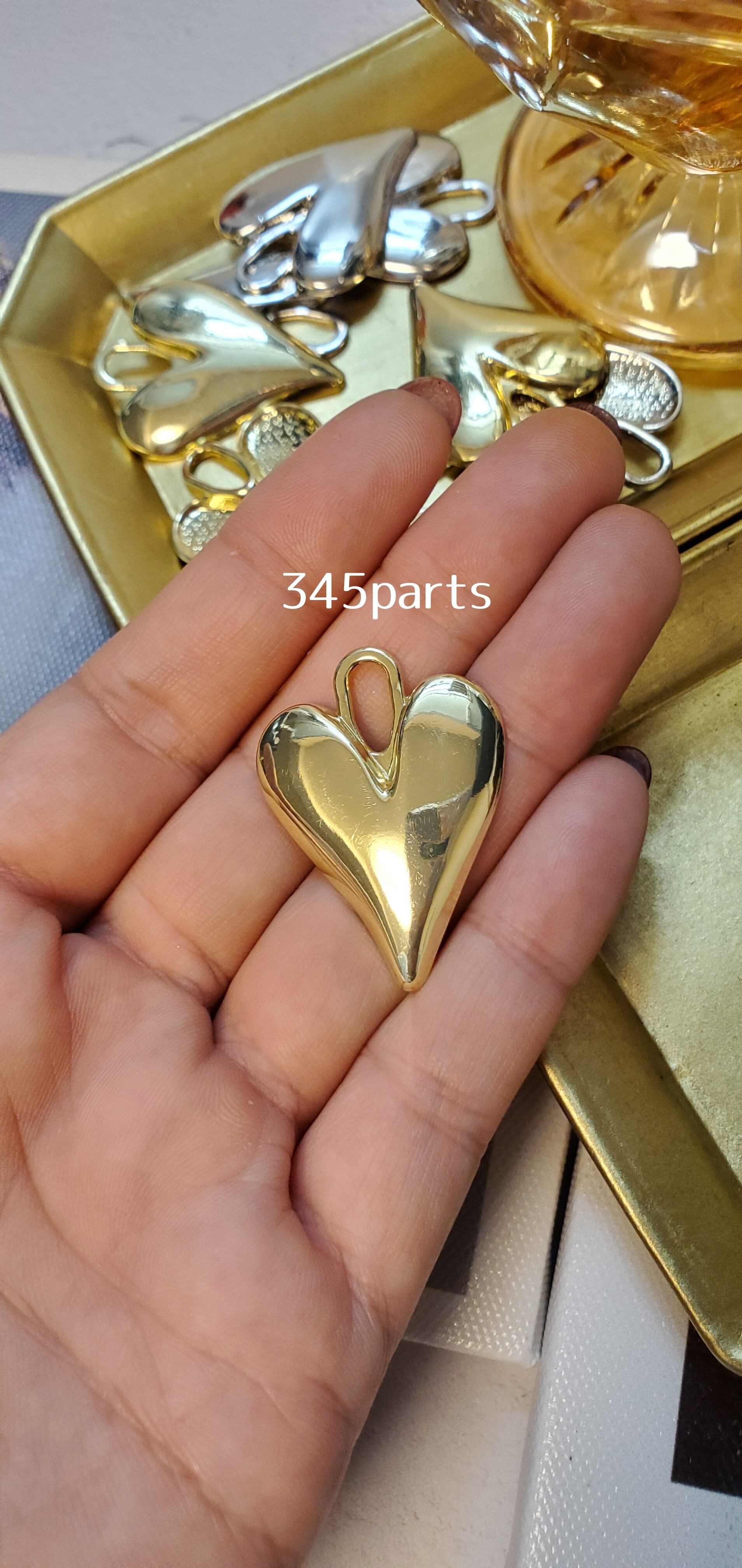 ハートチャーム(ゴールド/シルバー)4個 No.CH27