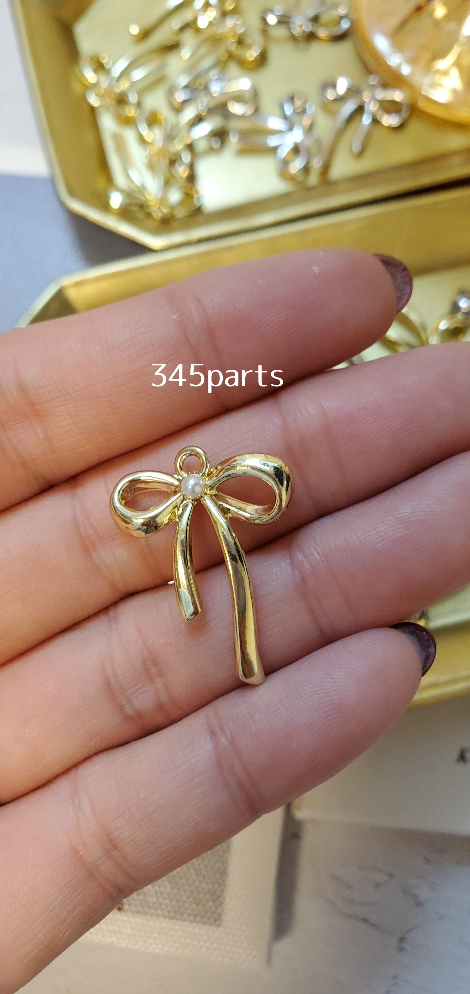 リボンチャーム(ゴールド/シルバー)4個 No.CH28