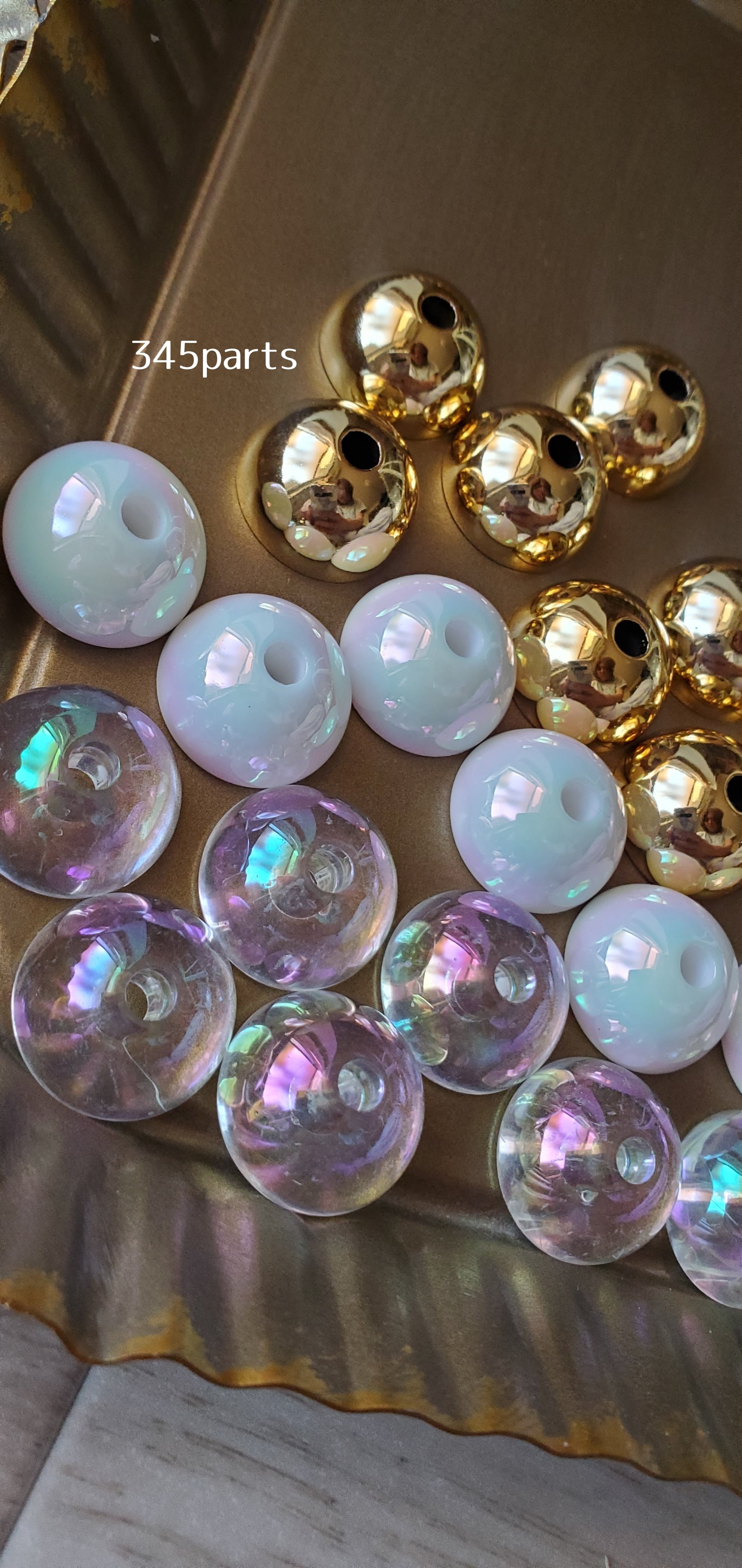 半円ビーズ(クリアオーロラ/ホワイトオーロラ/ゴールド)8個 No.BE42