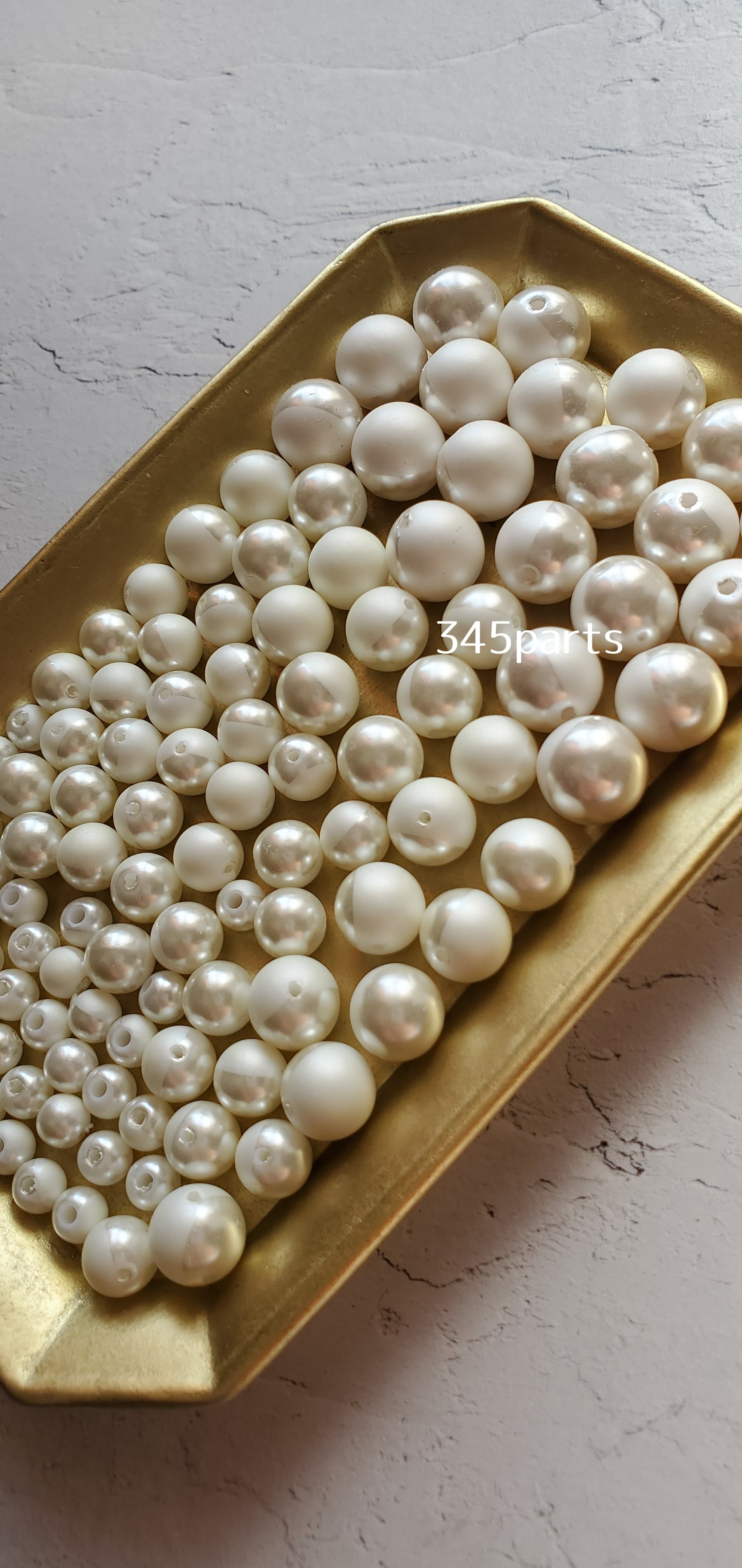バイカラービーズアイボリー 8㎜ 20個 No.BE101