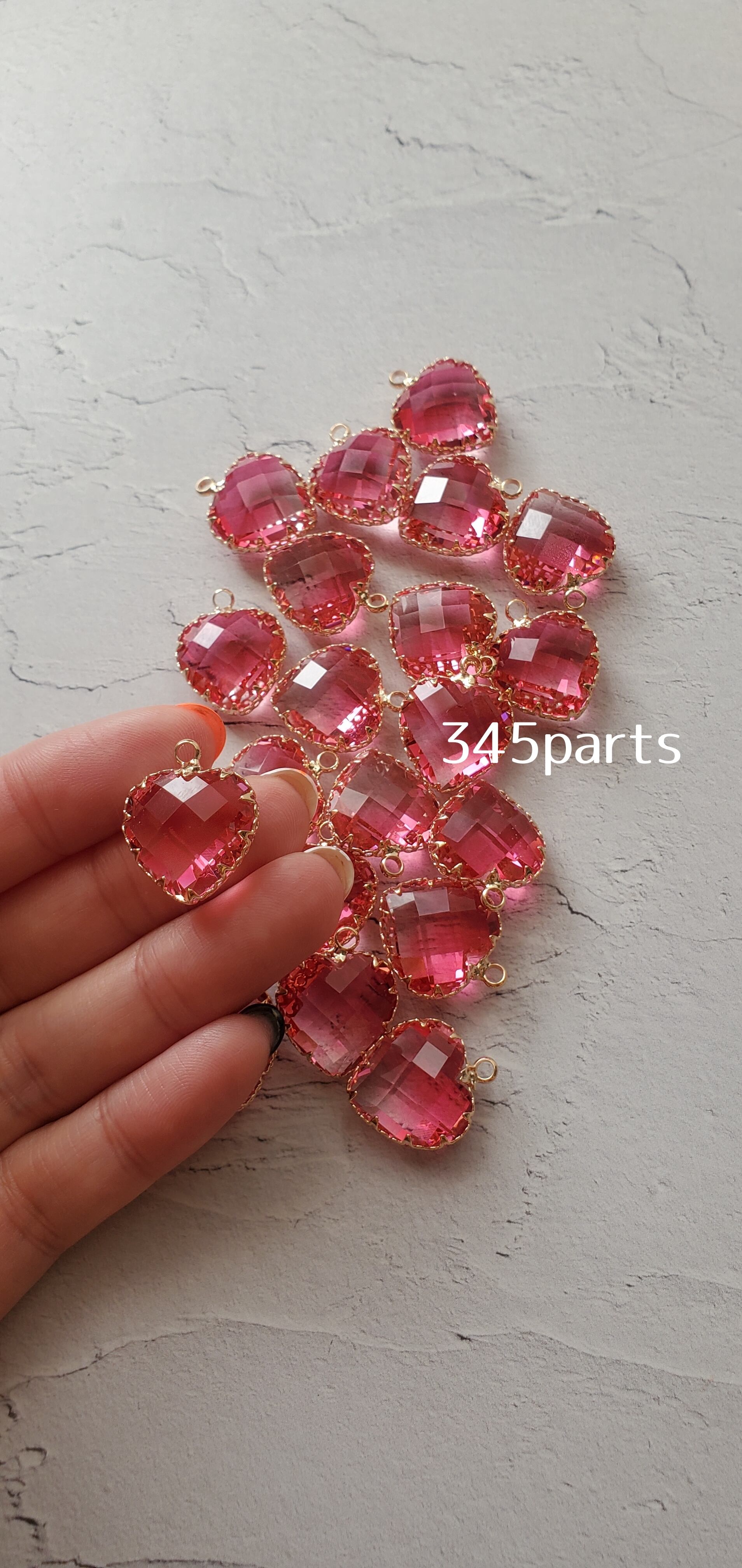 K9ガラスハートチャーム(ピンク) 2個 No.CH69