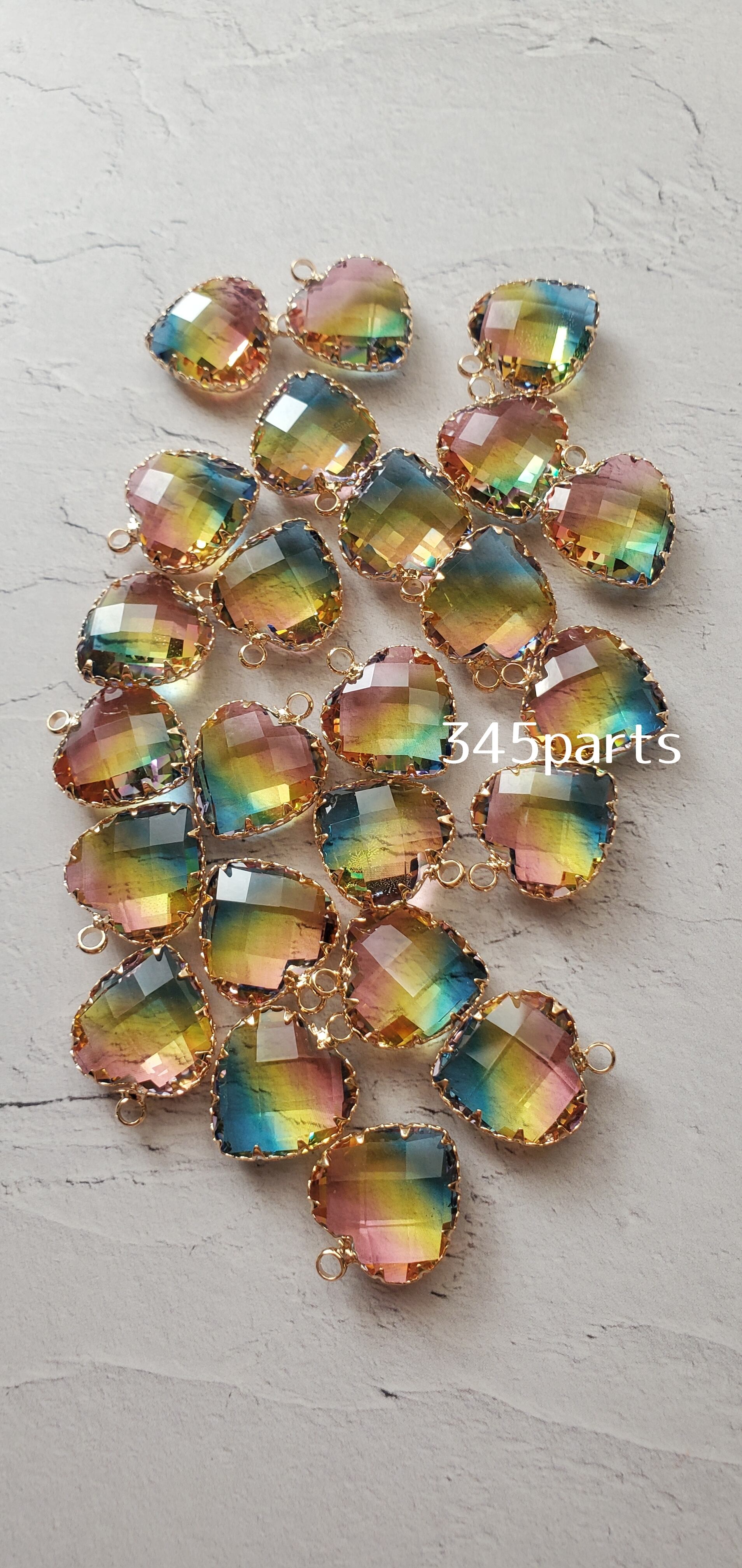 K9ガラスハートチャーム(レインボー) 2個 No.CH70