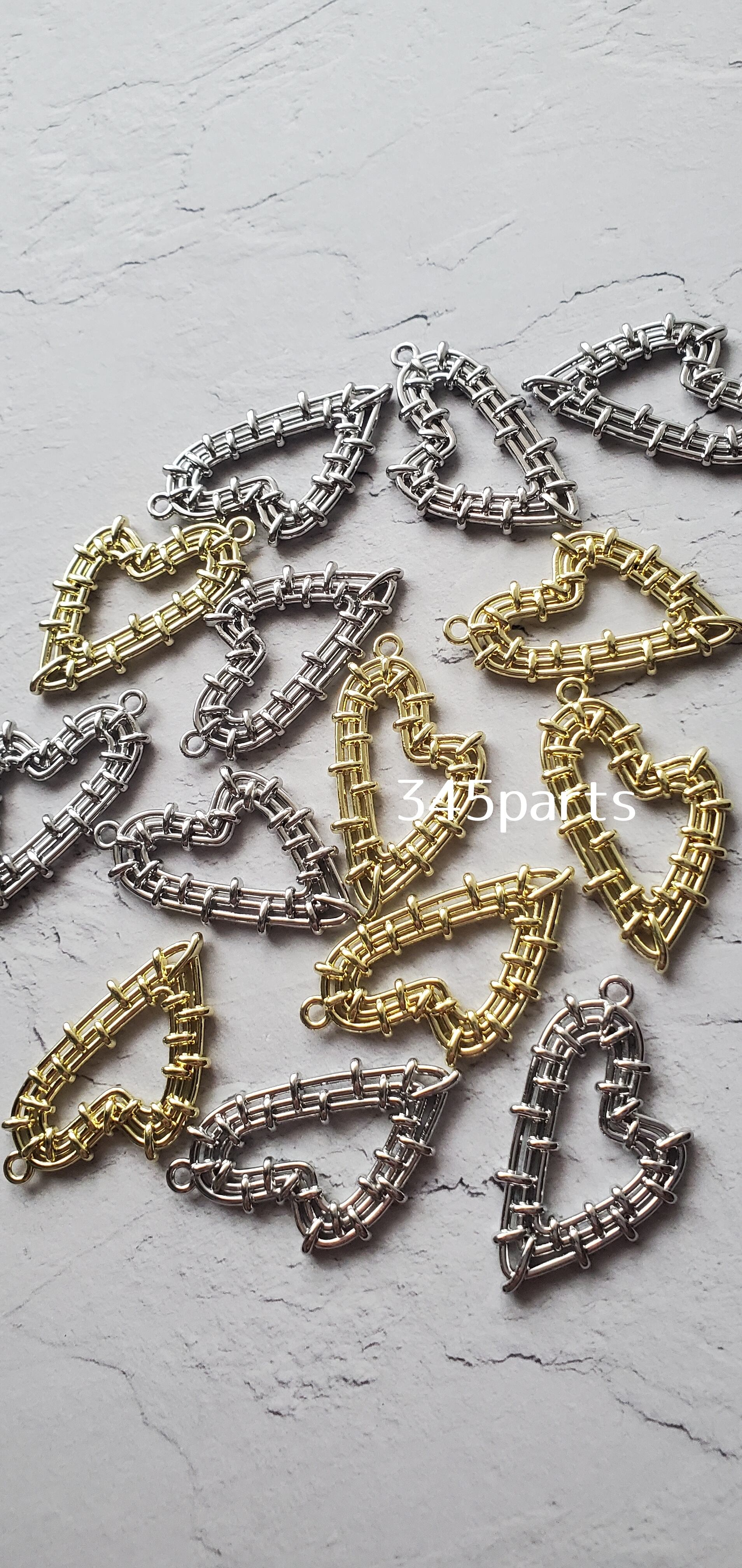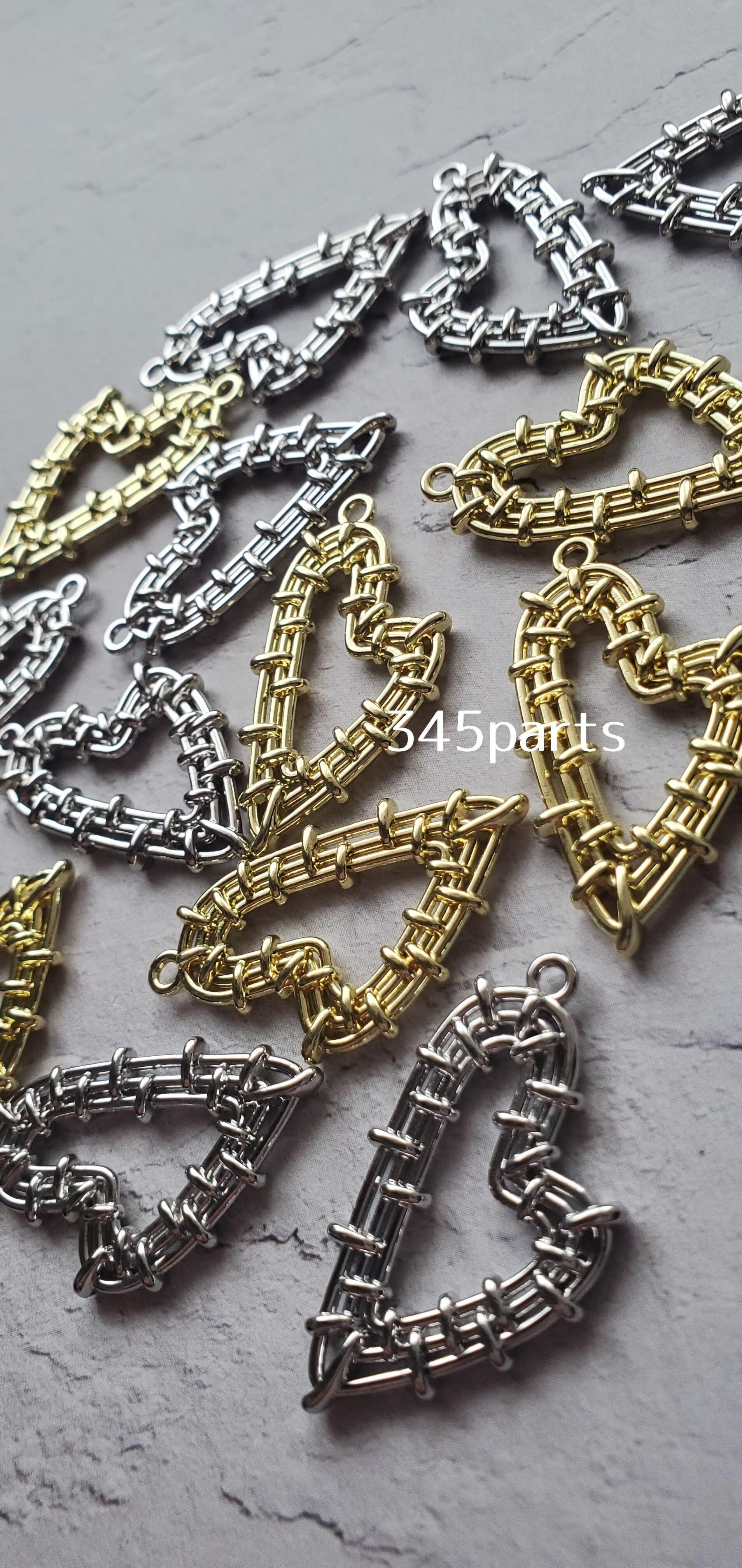 編みハートチャーム(ゴールド/シルバー)4個 No.CH82