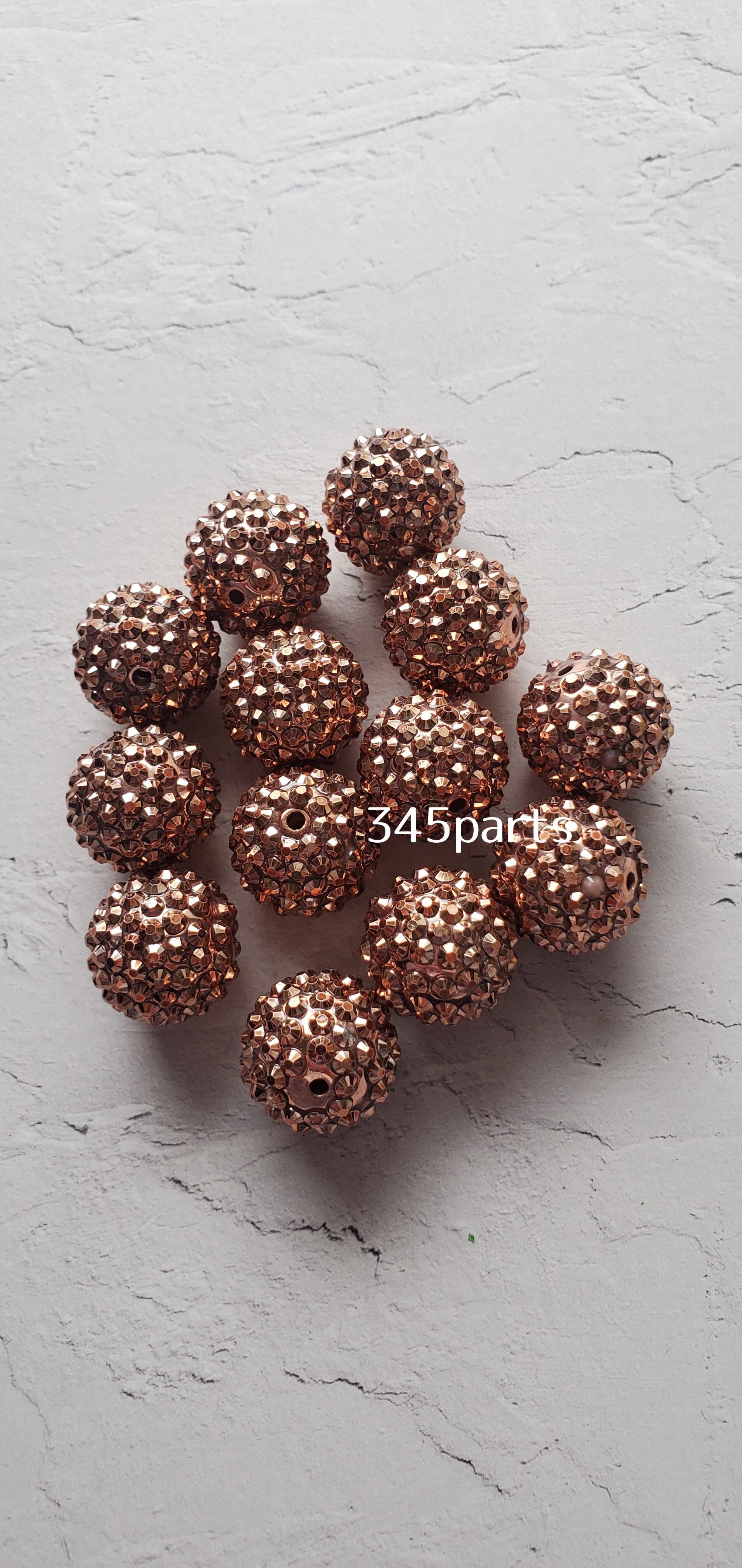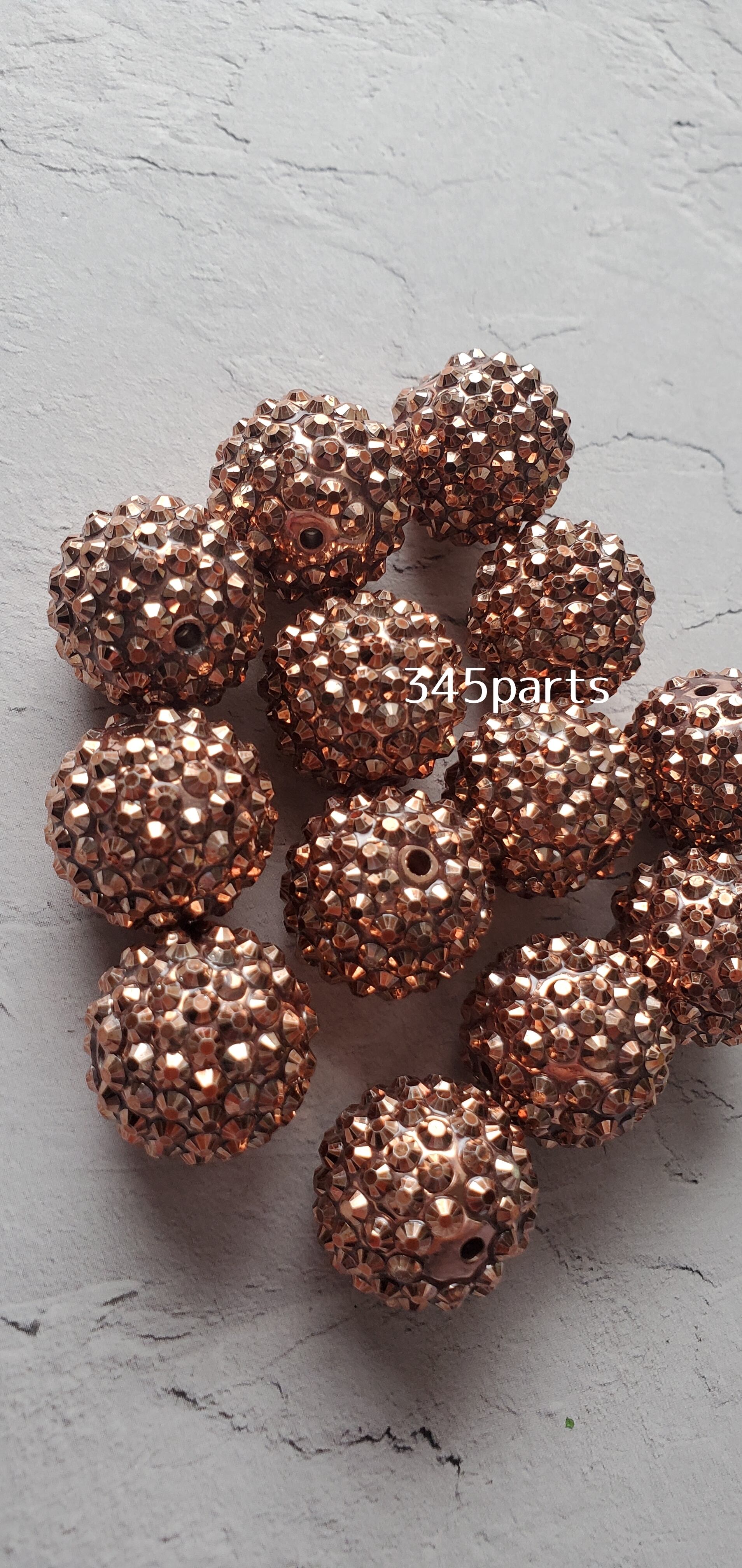 ラインストーン付ビーズ(ブラウン) 4個 No.BE153