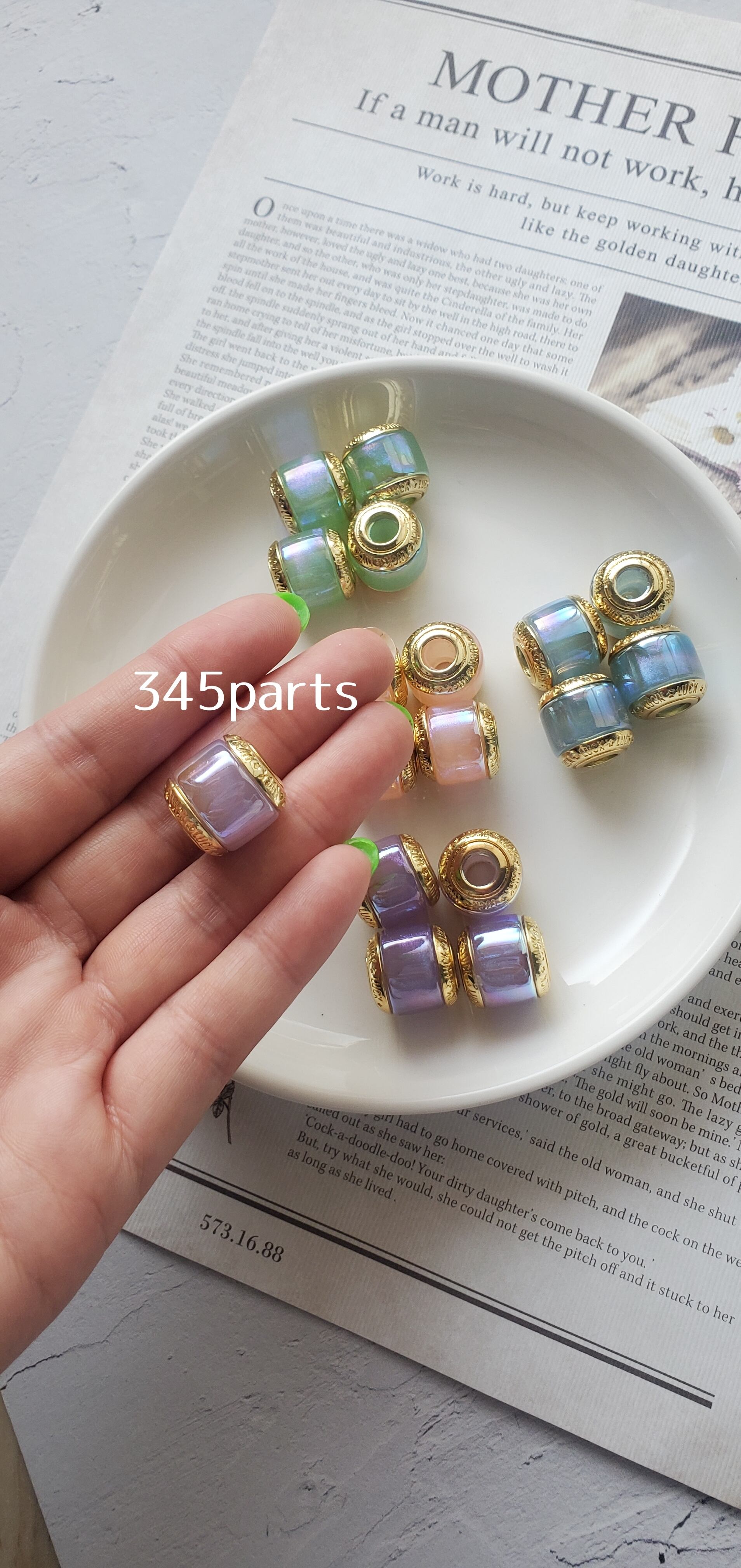 ドラム型ゴールド縁ビーズ(5色あり)16㎜ 2個 No.BE161