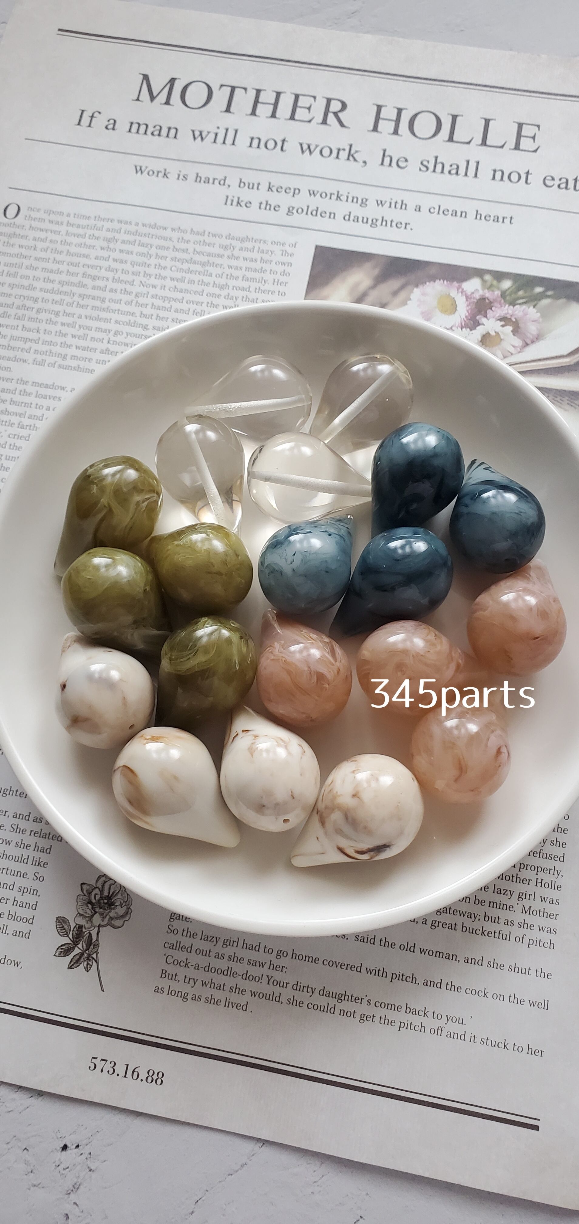 クリア以外はマーブルになっていて、とっても可愛いくぽってりしたビーズです(*^^*)