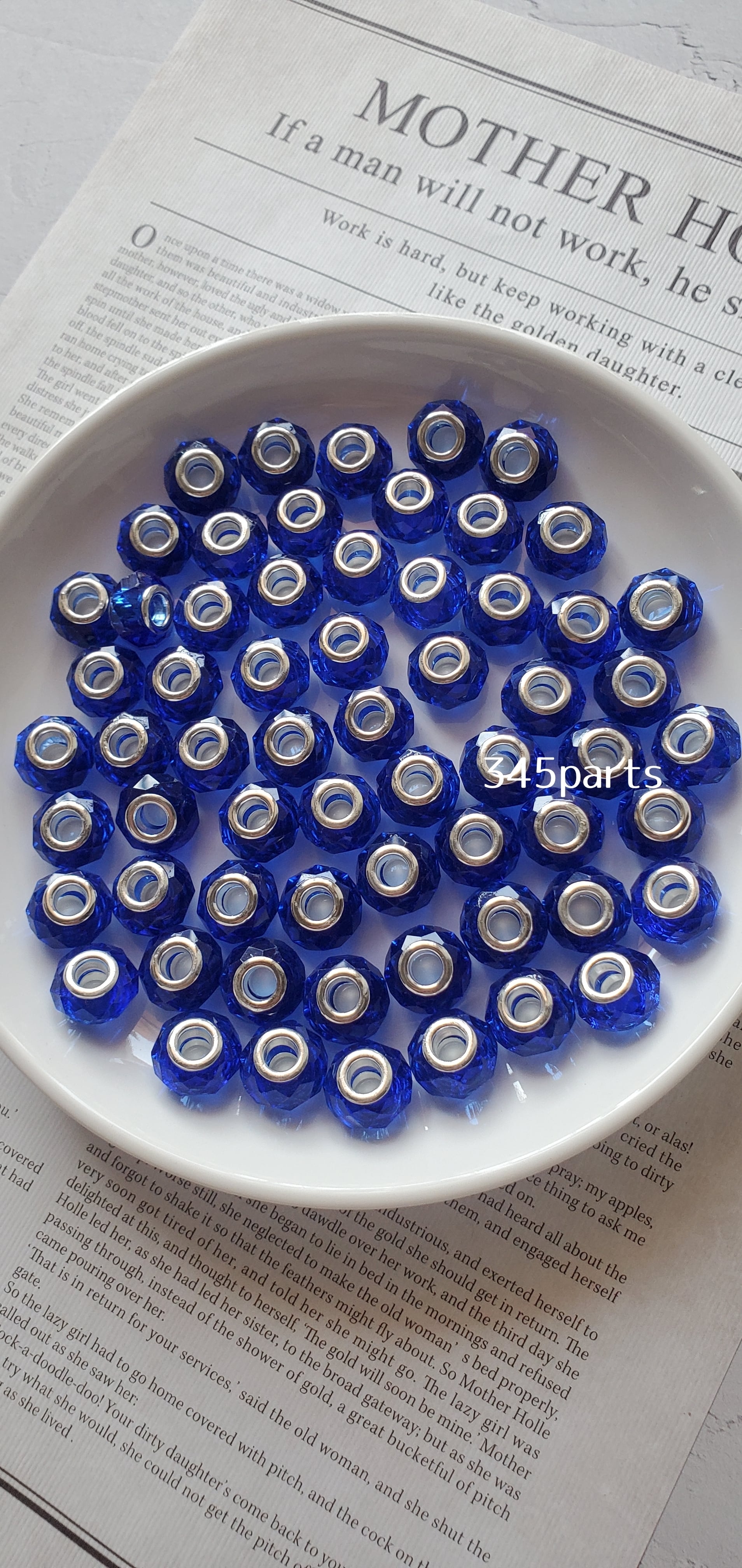 ガラス大穴ビーズ(ブルー) 6個 No.BE182