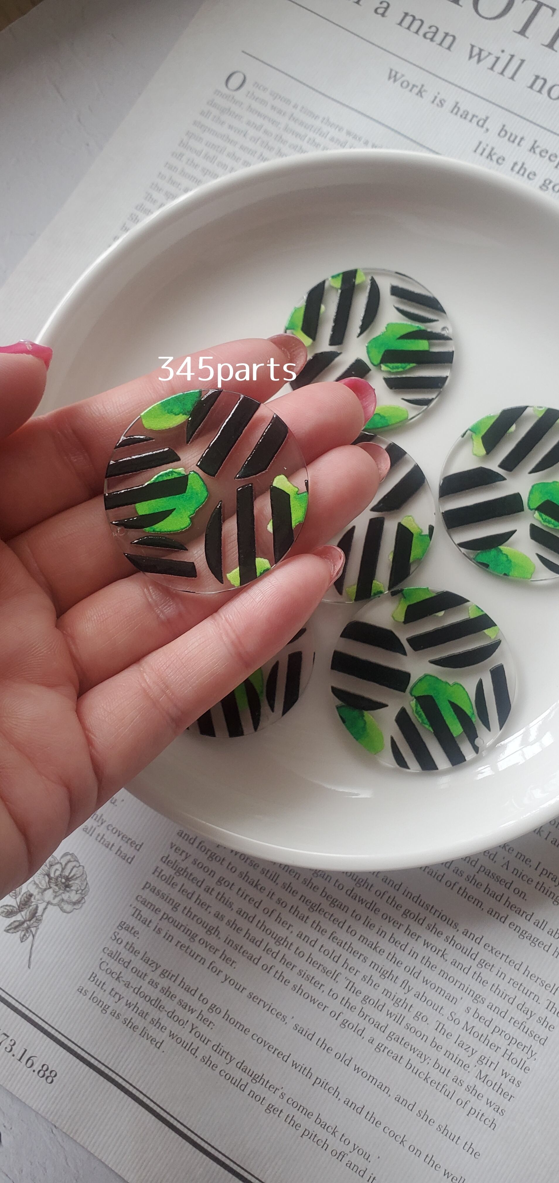 植物柄アクリルチャーム38㎜ 4個 No.BE189