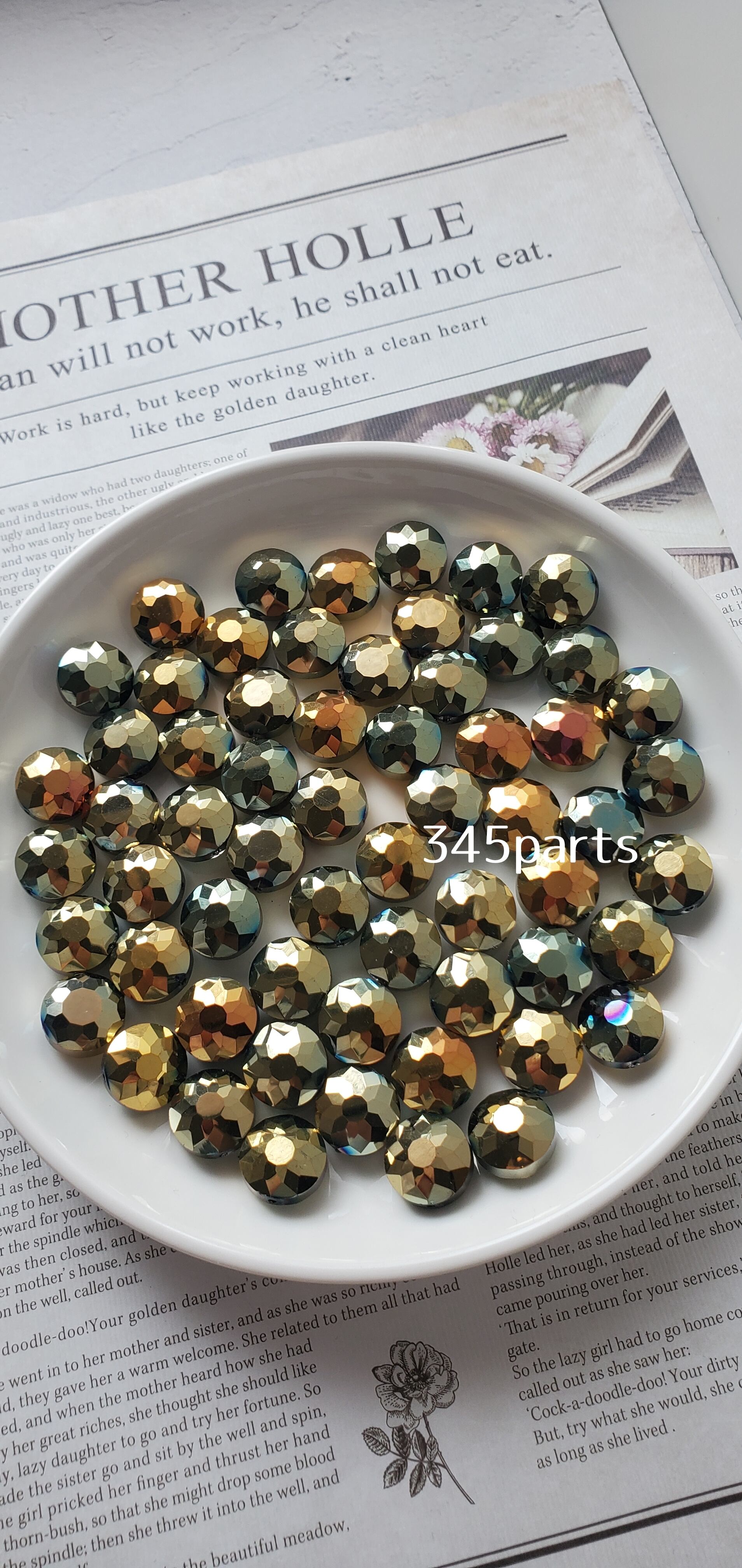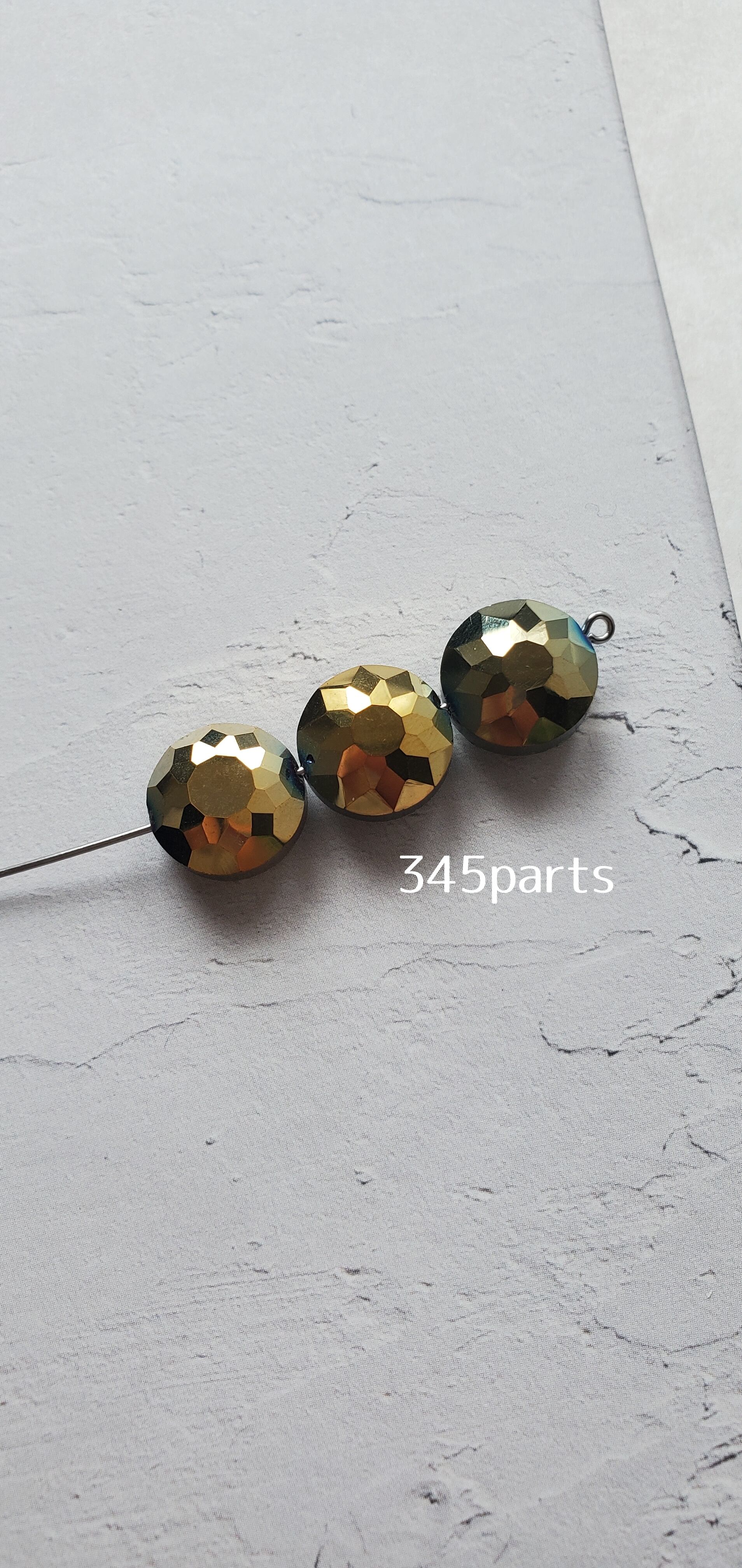 メッキガラス多面カットビーズ(グリーンゴールド) 6個 No.BE209