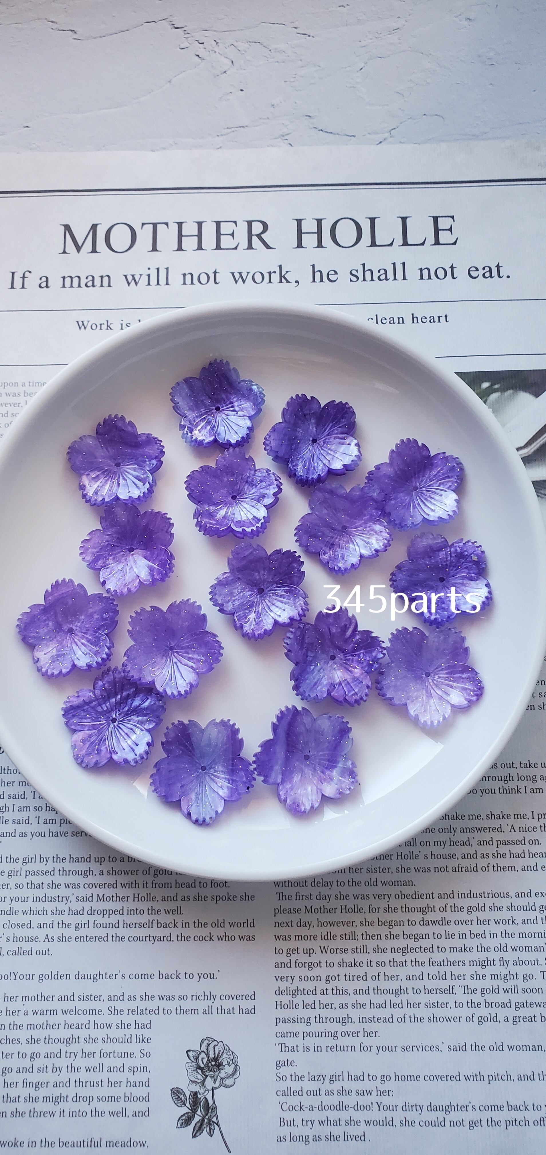 ラメ入り花ビーズキャップ(パープル) 6個 No.BE224