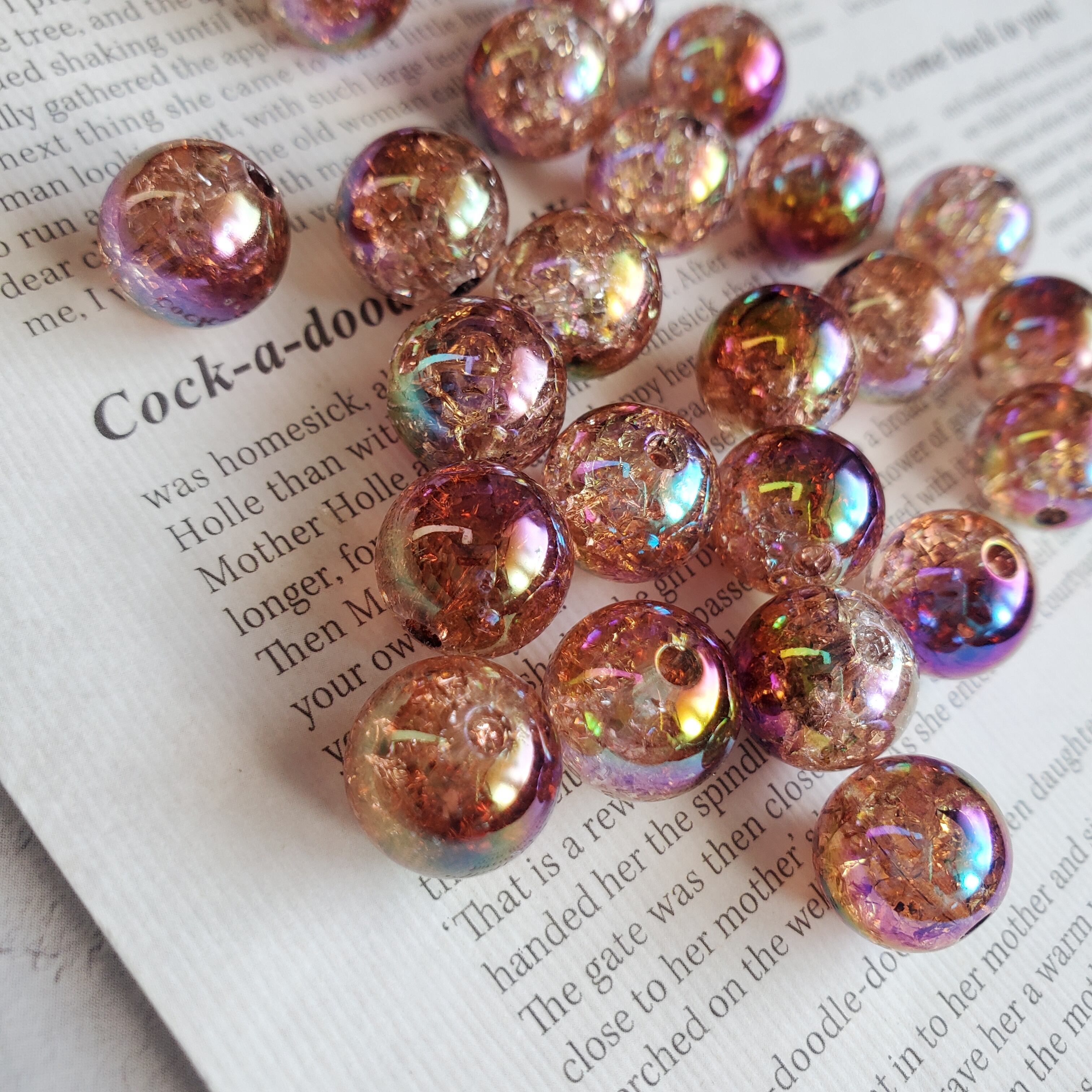 クラックオーロラビーズブラウン12mm 8個 No. BE279