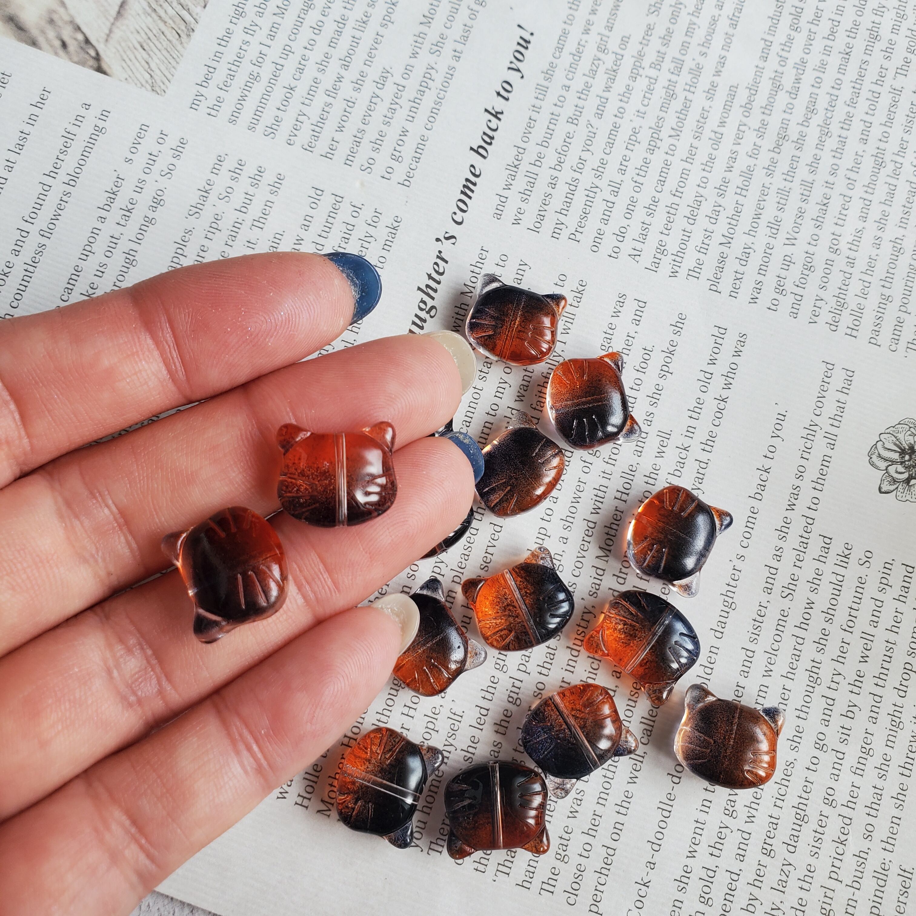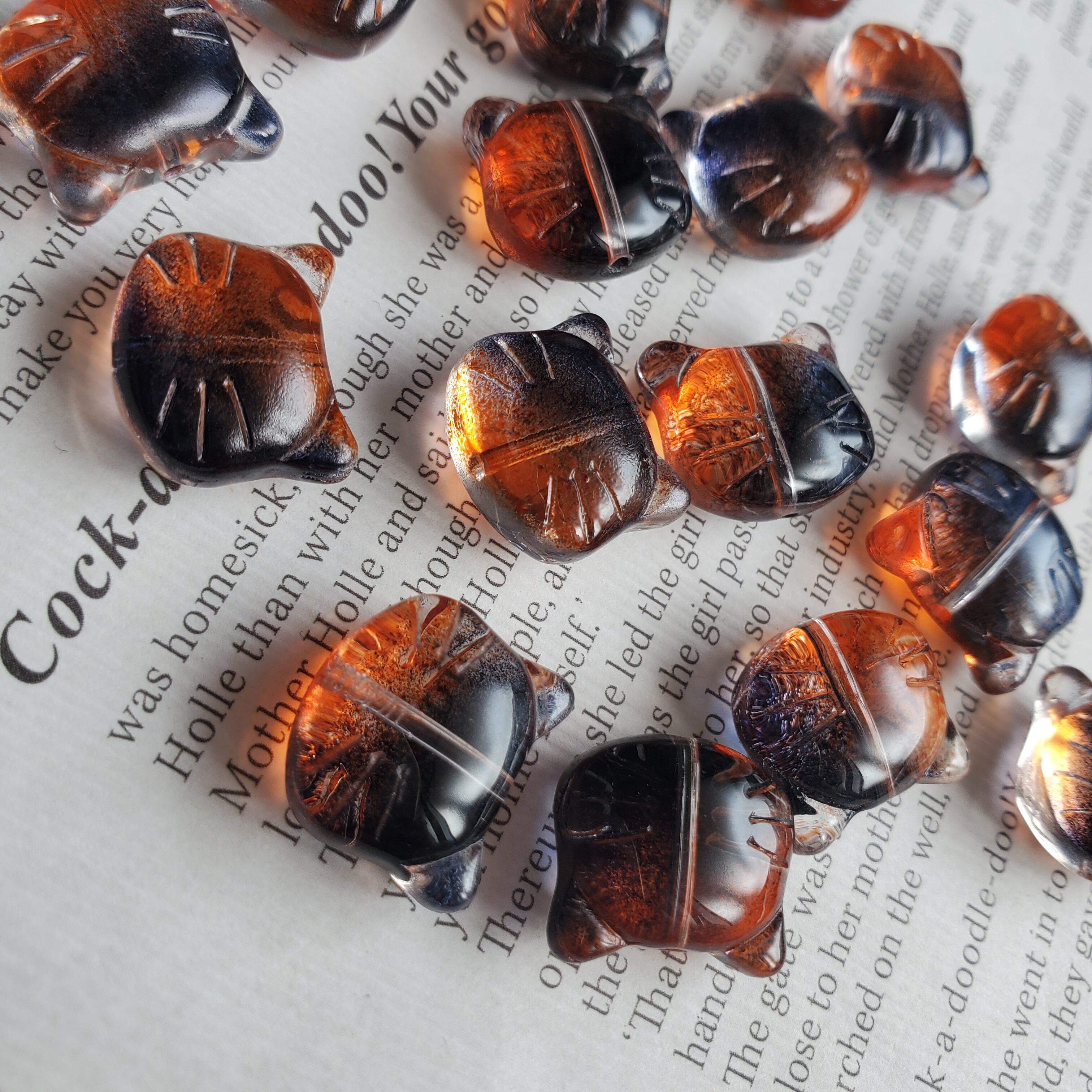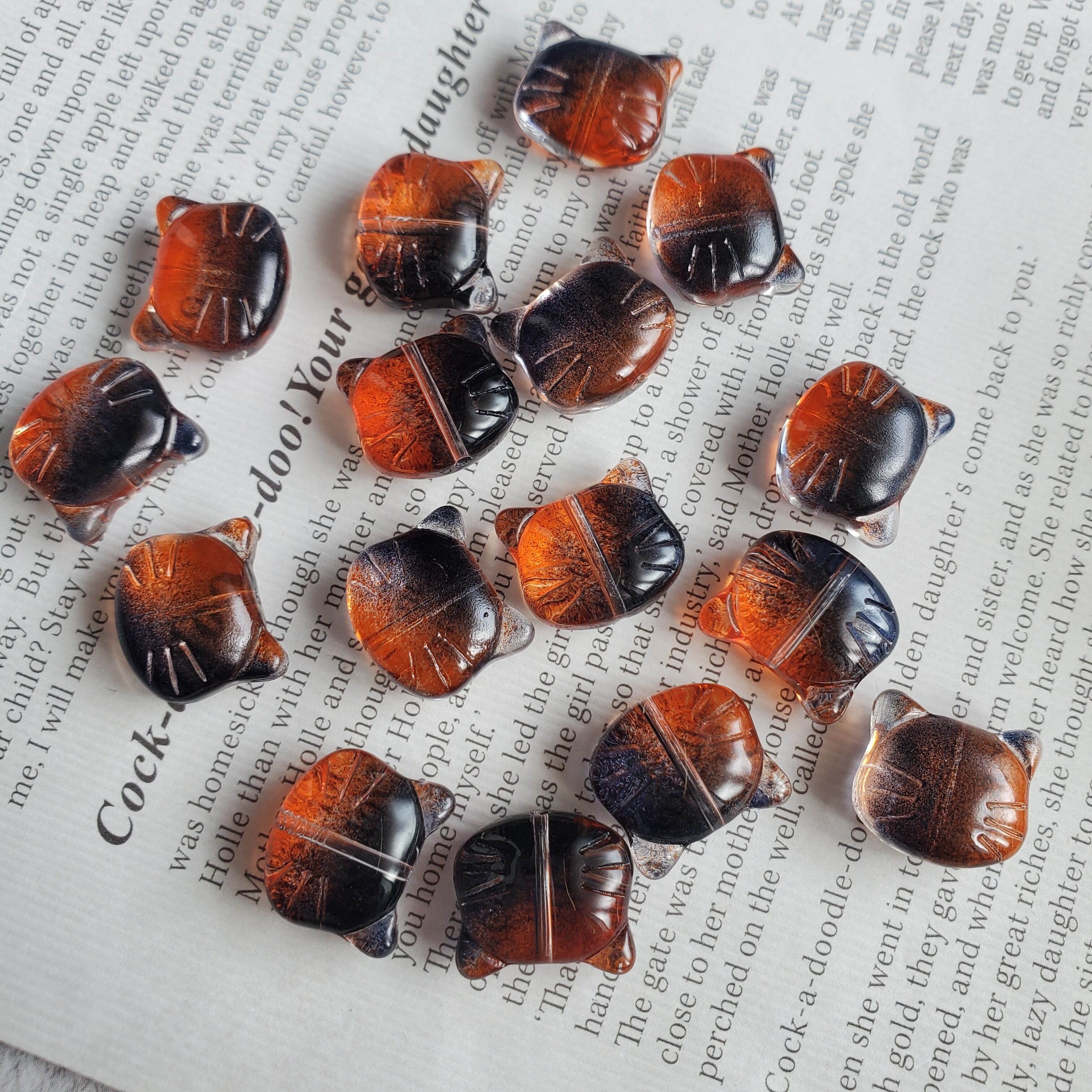 猫ちゃんガラスビーズ(ブラック/オレンジ)10個 No.BE282
