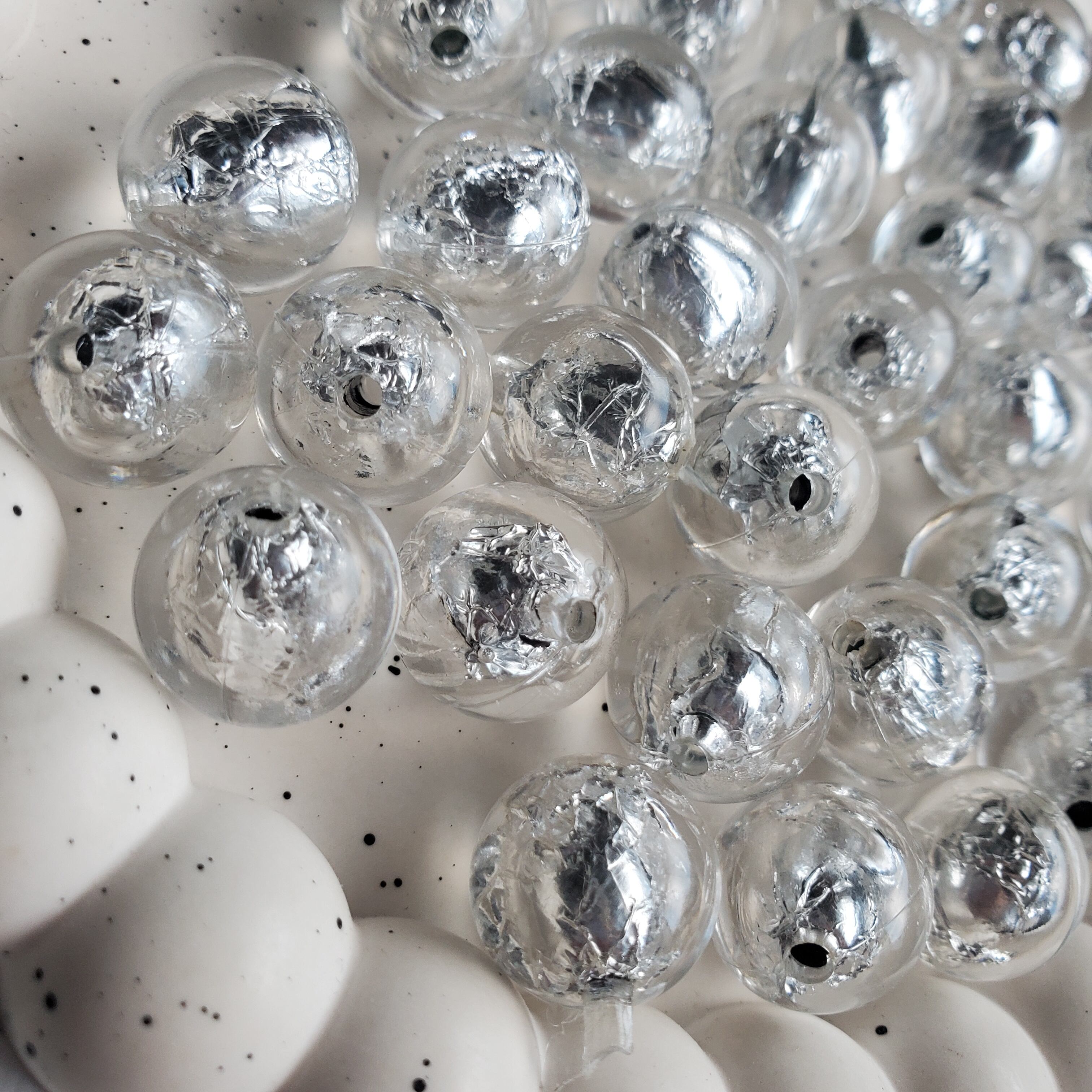 銀箔入りビーズ14㎜ 8個 No.BE284