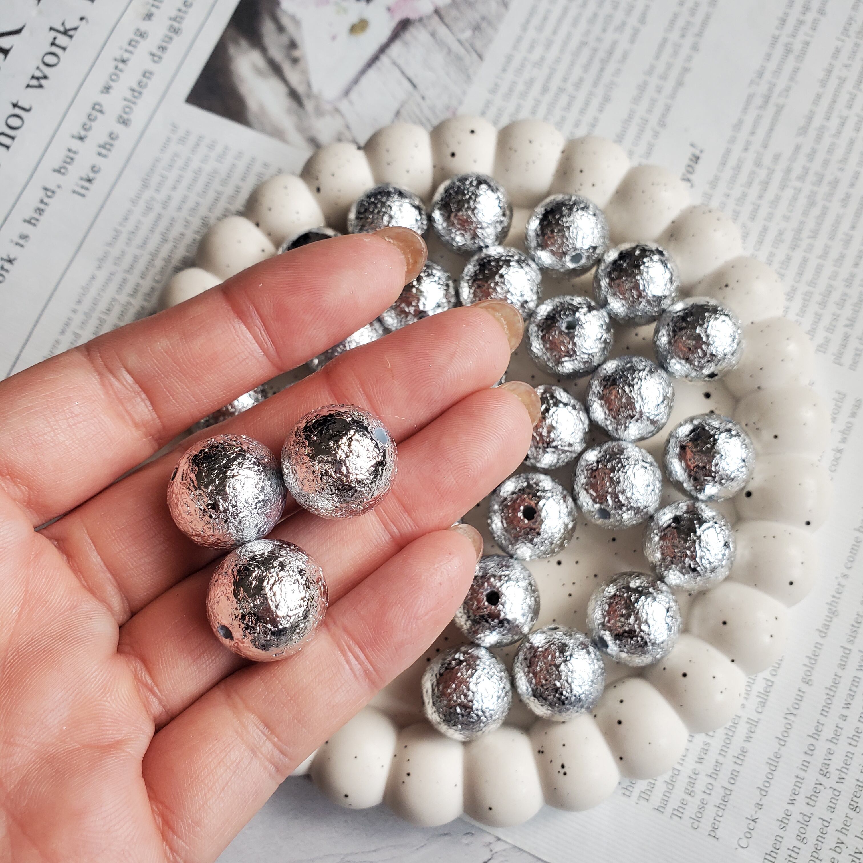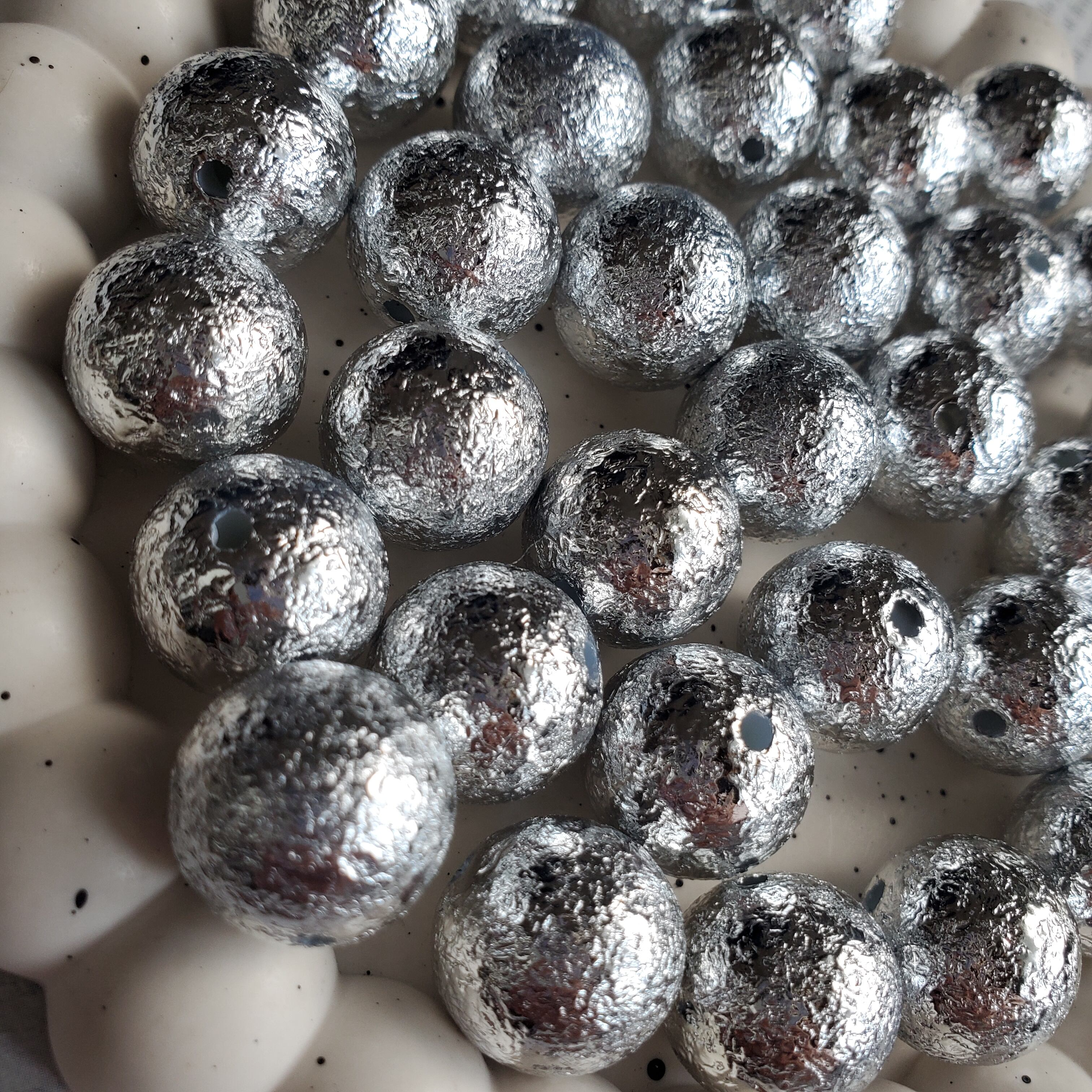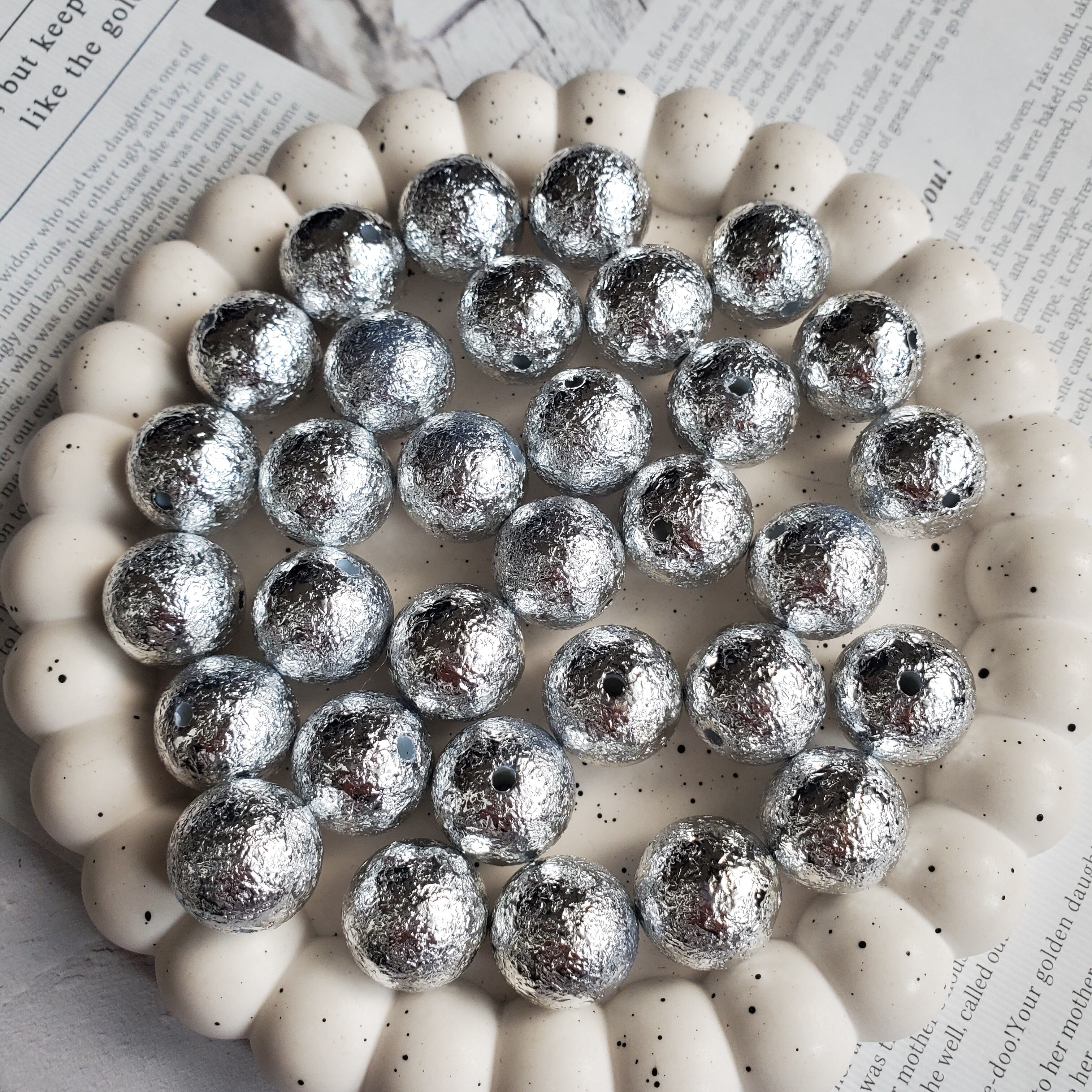 シワ加工ビーズ16㎜(シルバー) 4個 No.292